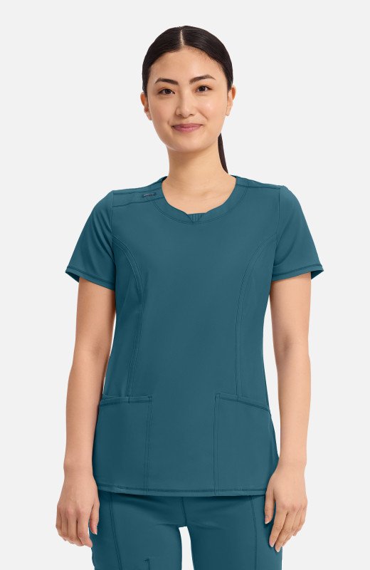 CHEROKEE INFINITY WOMEN'S ROUND NECK TOP AND RIB KNIT DRAWSTRING PANT SCRUB SET