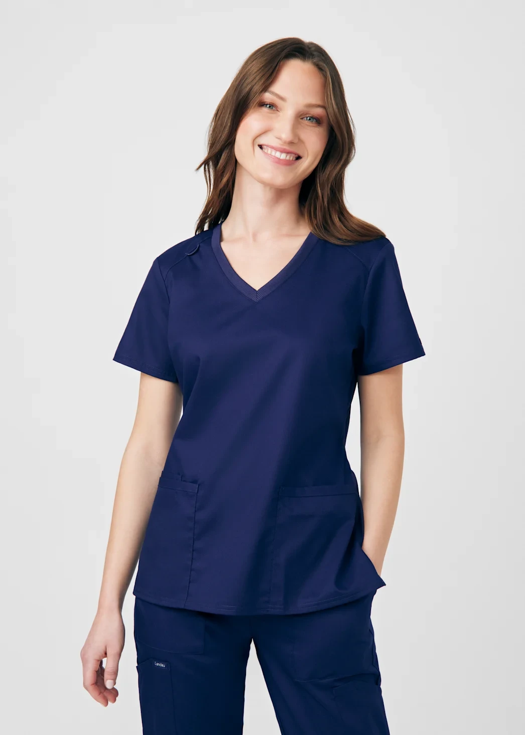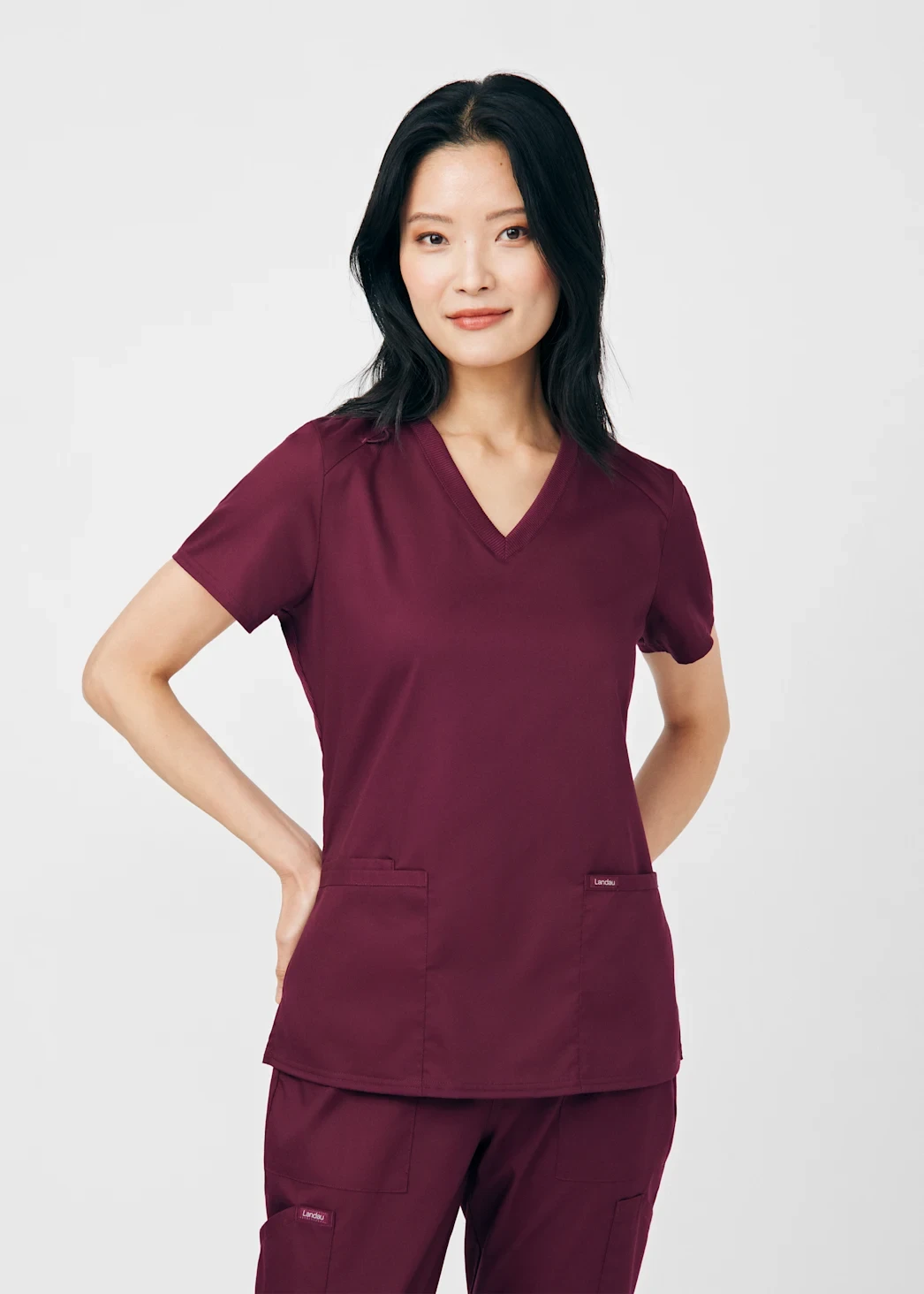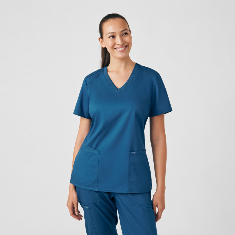 LANDAU PROFLEX WOMEN'S 3-POCKET V-NECK TOP AND CARGO PANTS SCRUB SET