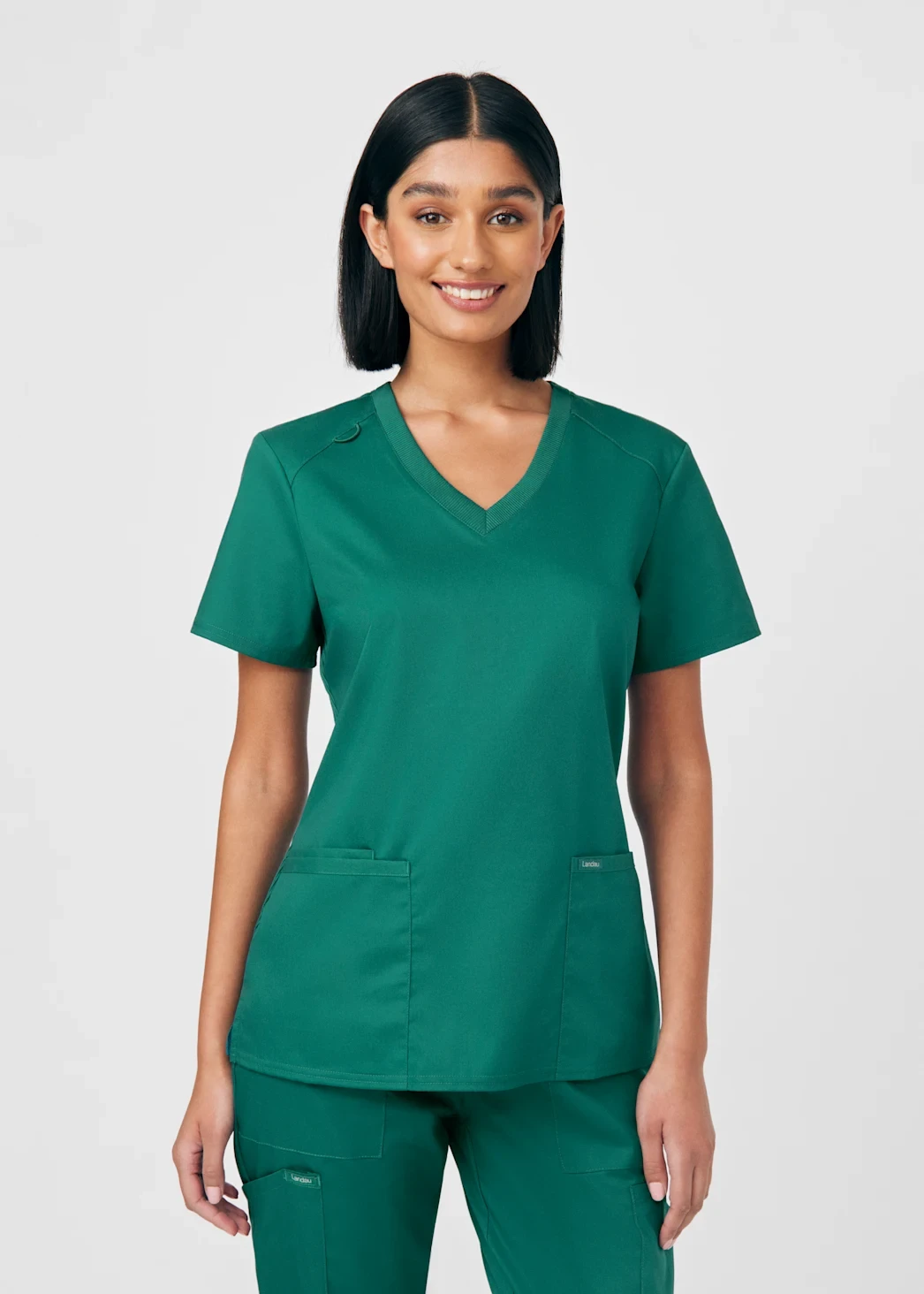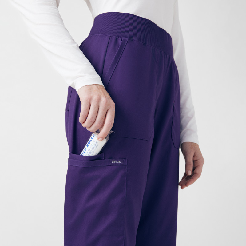 LANDAU PROFLEX WOMEN'S 3-POCKET V-NECK TOP AND CARGO PANTS SCRUB SET