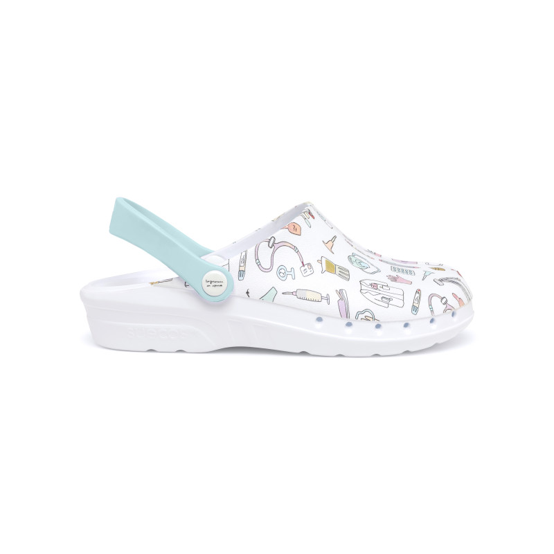 Featuring a secure rear strap and a textured insole that promotes circulation, Oden Print is perfect for professionals who need long-lasting comfort. The slip-resistant, latex-free EVA sole ensures safety, while the antimicrobial and waterproof material maintains hygiene. These clogs are lightweight, flexible, and sterilizable with cold methods, such as UV light and hydrogen peroxide.